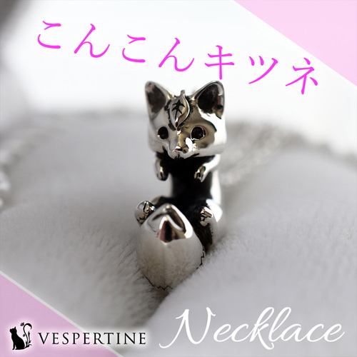 ▼ひょいと丸まった姿勢で宙を舞うキツネのネックレス。キリっとした表情だけど可愛らしさも抜群、かっこかわいいデザインに仕上がっています。額の上に、さりげなく乗っかっている木の葉がワンポイントのアクセント。立体造形ですので、どの角度から見ても狐の綺麗な姿を楽しむことができます。