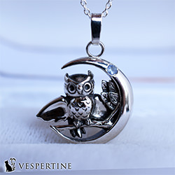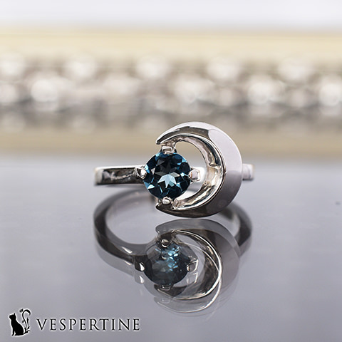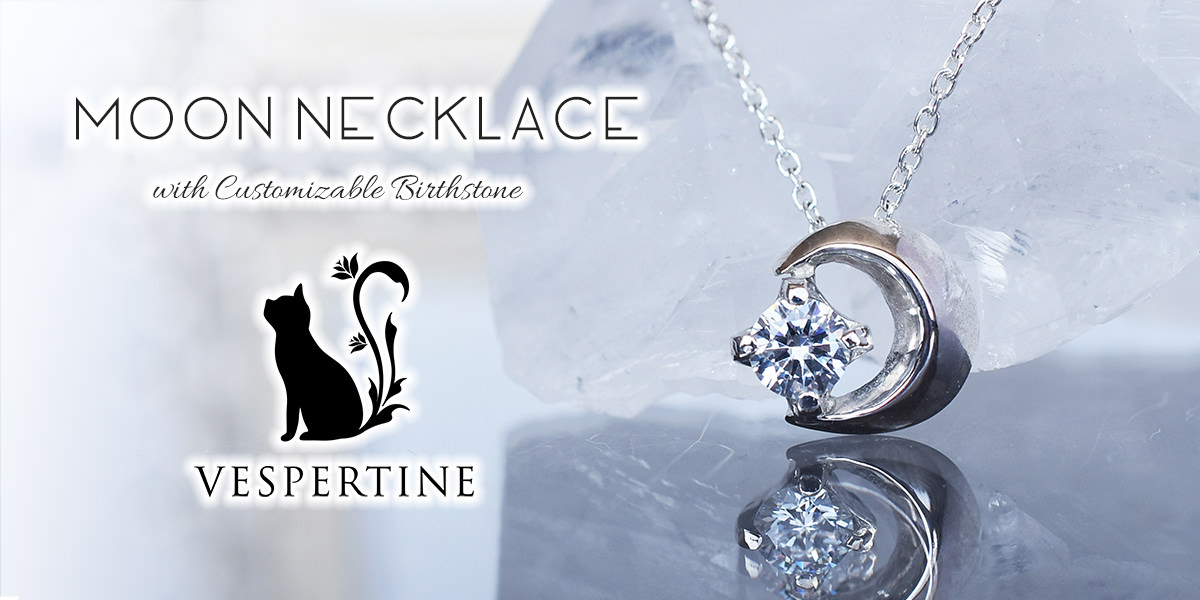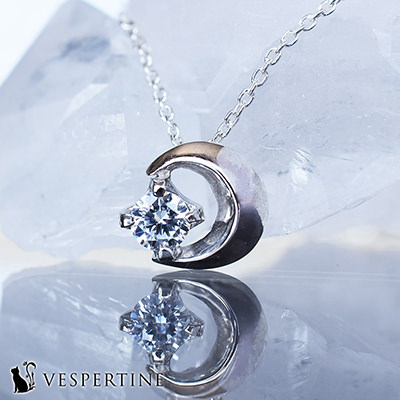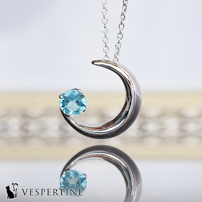 夜空を照らす美しい月をモチーフにしたネックレス。星の誕生石とシルバーの輝きが合わさり、女性のデコルテを神秘的に彩る月のジュエリーです。