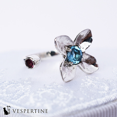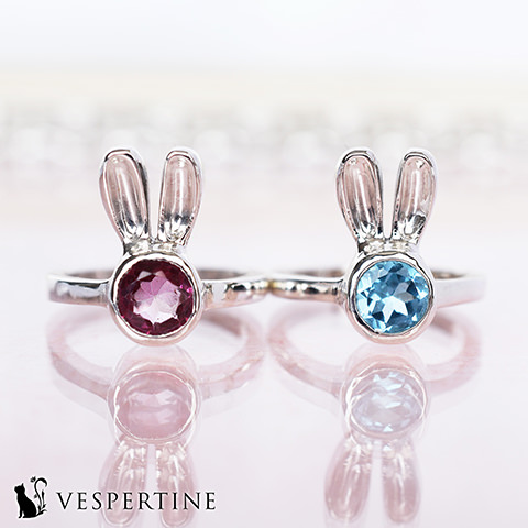月や花、うさぎなど、自然や動物をモチーフにしたリングのコレクション。きれいな天然石がキラキラと美しい輝きを放ちます。