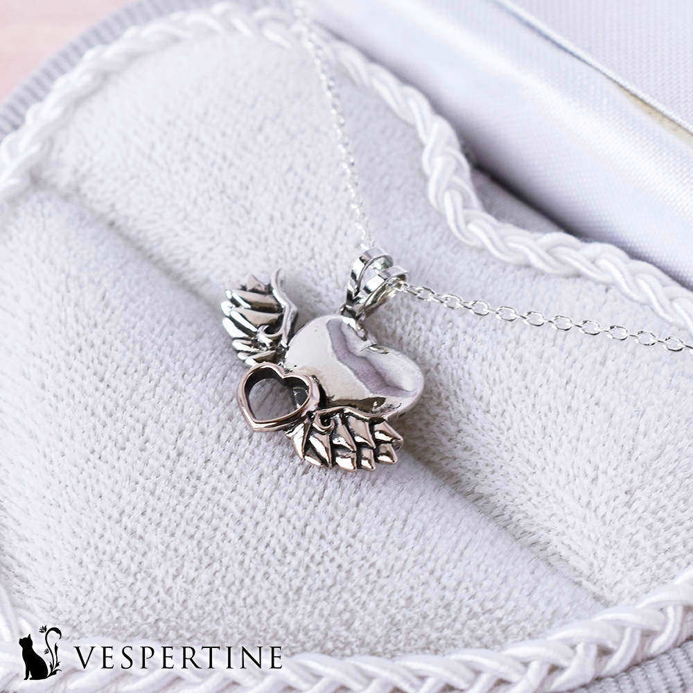 VESPERTINE(ヴェスパタイン)の天使のハートネックレスは、可愛いデザインのアクセサリーやスピリチュアルが好きな女性へのプレゼントにも人気です。