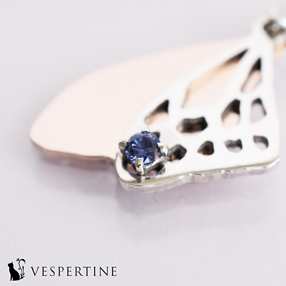 一頭の蝶が美しく描き出した、羽の多彩な模様の一片を透かしデザインで表現したジュエリーです。