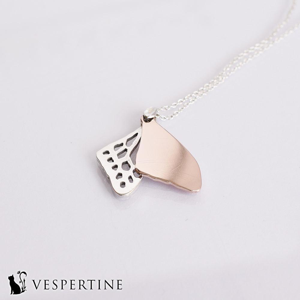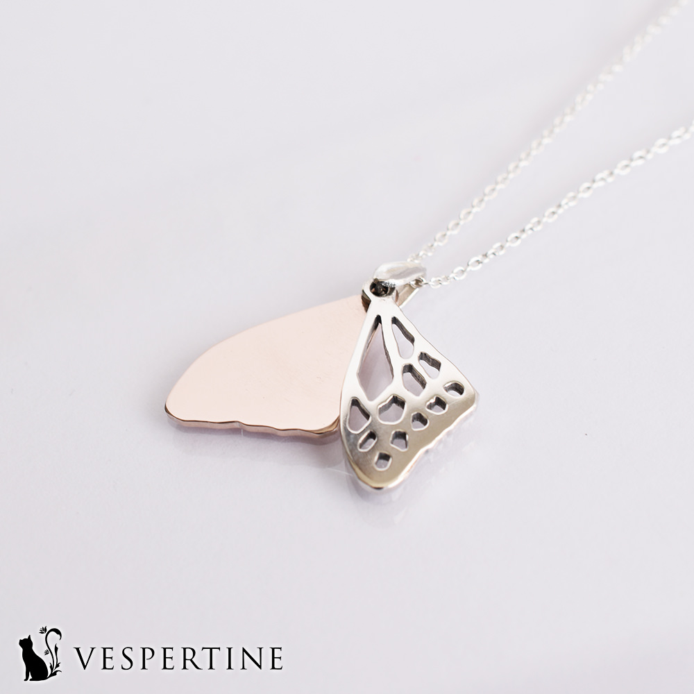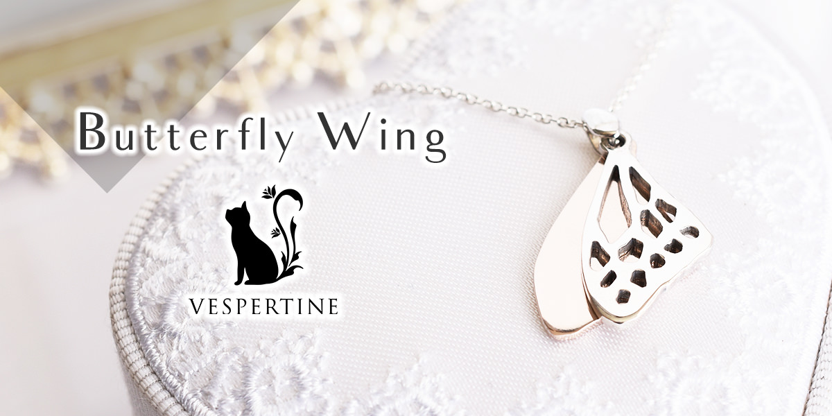 VESPERTINE(ヴェスパタイン)の蝶の羽のネックレスは、蝶モチーフのアクセサリーが好きな女性におすすめです。プレゼントにも人気です。