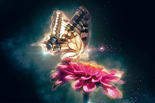 そして蝶の羽は光を受けると、羽の色彩や模様が宝石のように煌めき、まるで夢の中にいるかのような神秘的な雰囲気を演出します。その美しさは、ただ見るだけでなく、心の奥底に深く響きます。