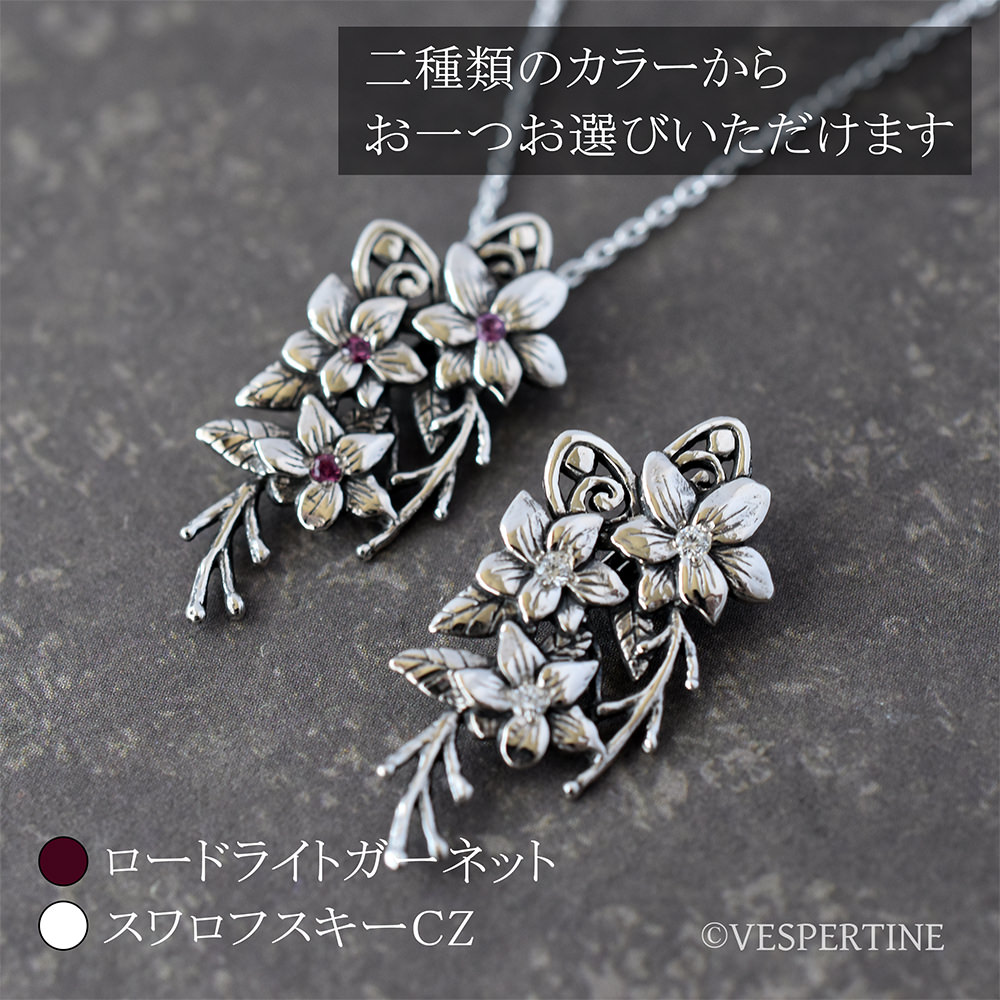 クレマチスの美しさをシルバーで表現した『VESPERTINE』のネックレス。繊細ながら煌びやかな花のアクセサリーです。