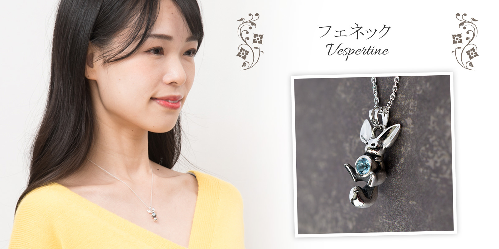 きつねやフェネックが好きな女性へのプレゼントにおすすめです。『VESPERTINE』オリジナルのジュエリー。