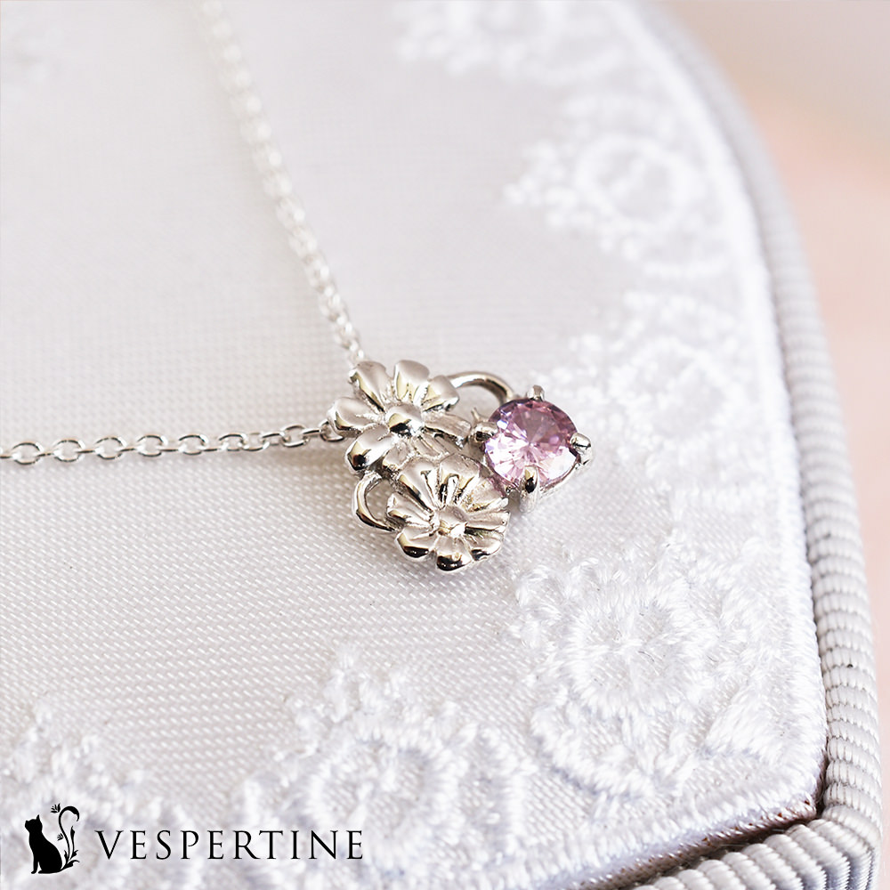 VESPERTINE(ヴェスパタイン)の「花と誕生石のネックレス」は、宇宙の神秘と自然の調和、そしてコスモスの花という美のシンボルを宿した魔法の一片です。
