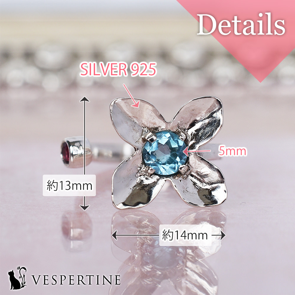 天然石と誕生石が石留めされた花のデザインは、その美しさを永遠に刻んだような印象的なアクセサリーとなっています。花は普遍的なモチーフでありながらも、女性のファッションを彩る大切なアクセントの一つとして愛されてきました。