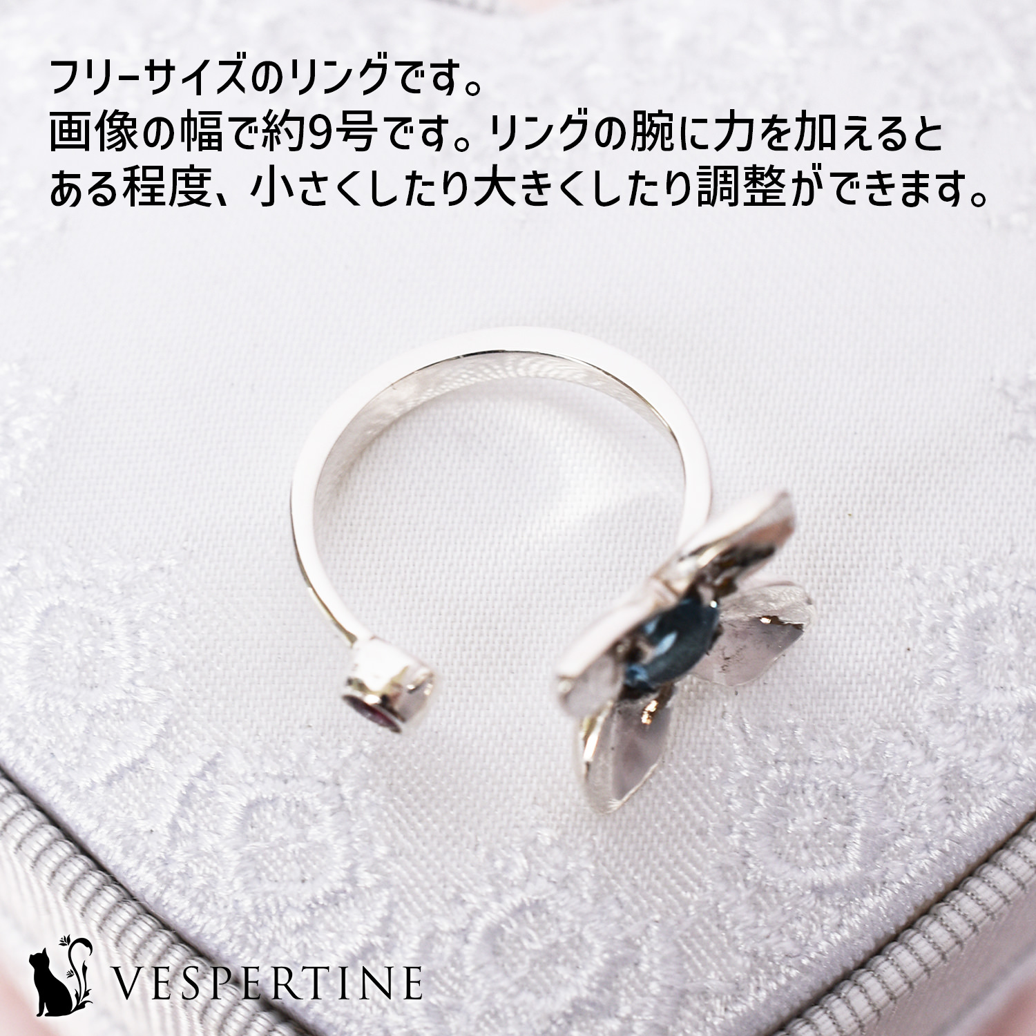 花の美しさと自然のエッセンスが盛り込まれたリングです。繊細なデザインと美しいカラーが融合し、れいでかわいいジュエリーです。