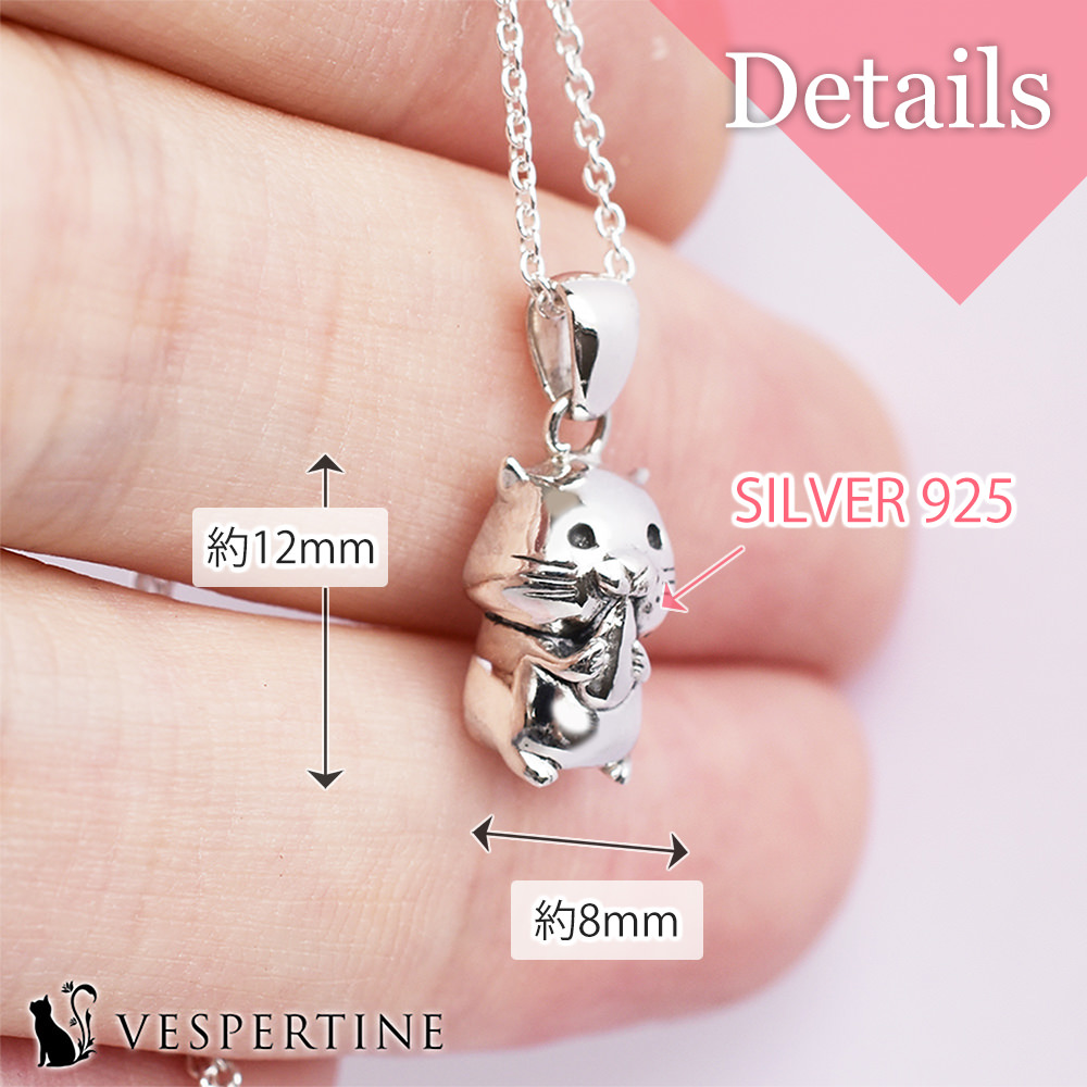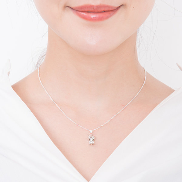 ハッピー気分なハムスターが、胸元でかわいらしく揺れる、動物好きな女の子のためのシルバーネックレス。