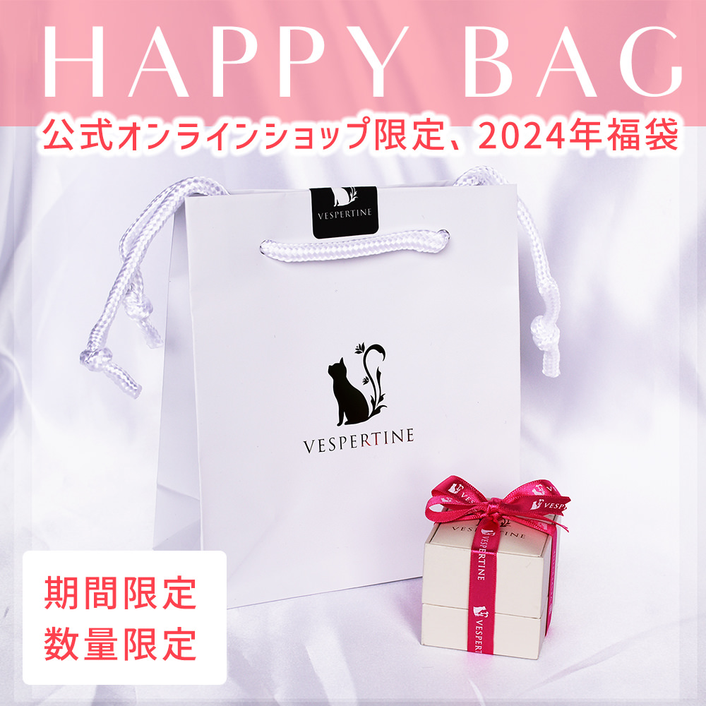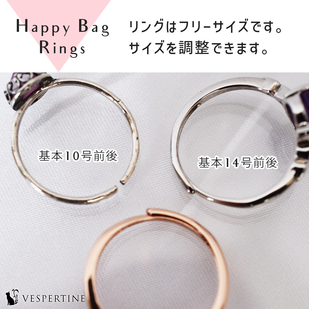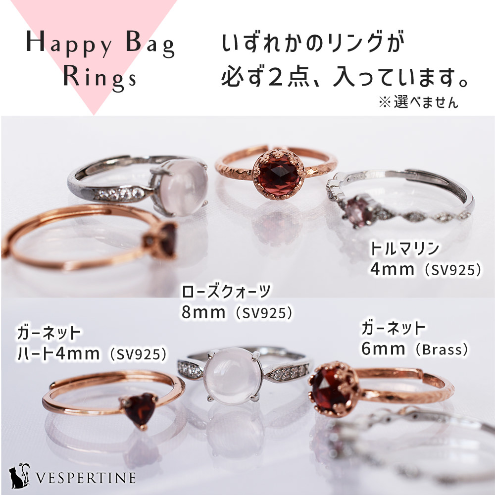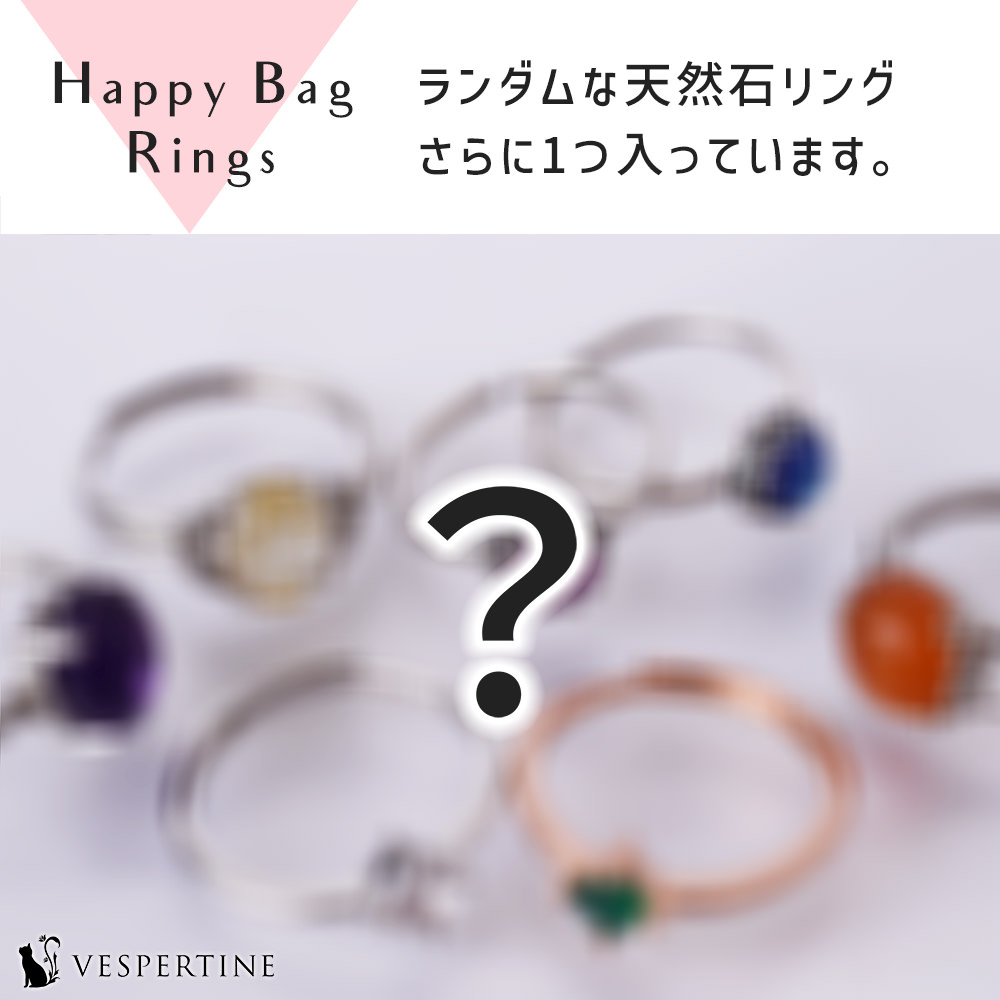 VESPERTINE(ヴェスパタイン)オリジナル「透かし雫のネックレス(石なし)」と「花とリボンのネックレス」の2点ほか、天然石のネックレスが2点、リングが3点、合計7点のアクセサリーがセットになったお得なハッピーバッグです。