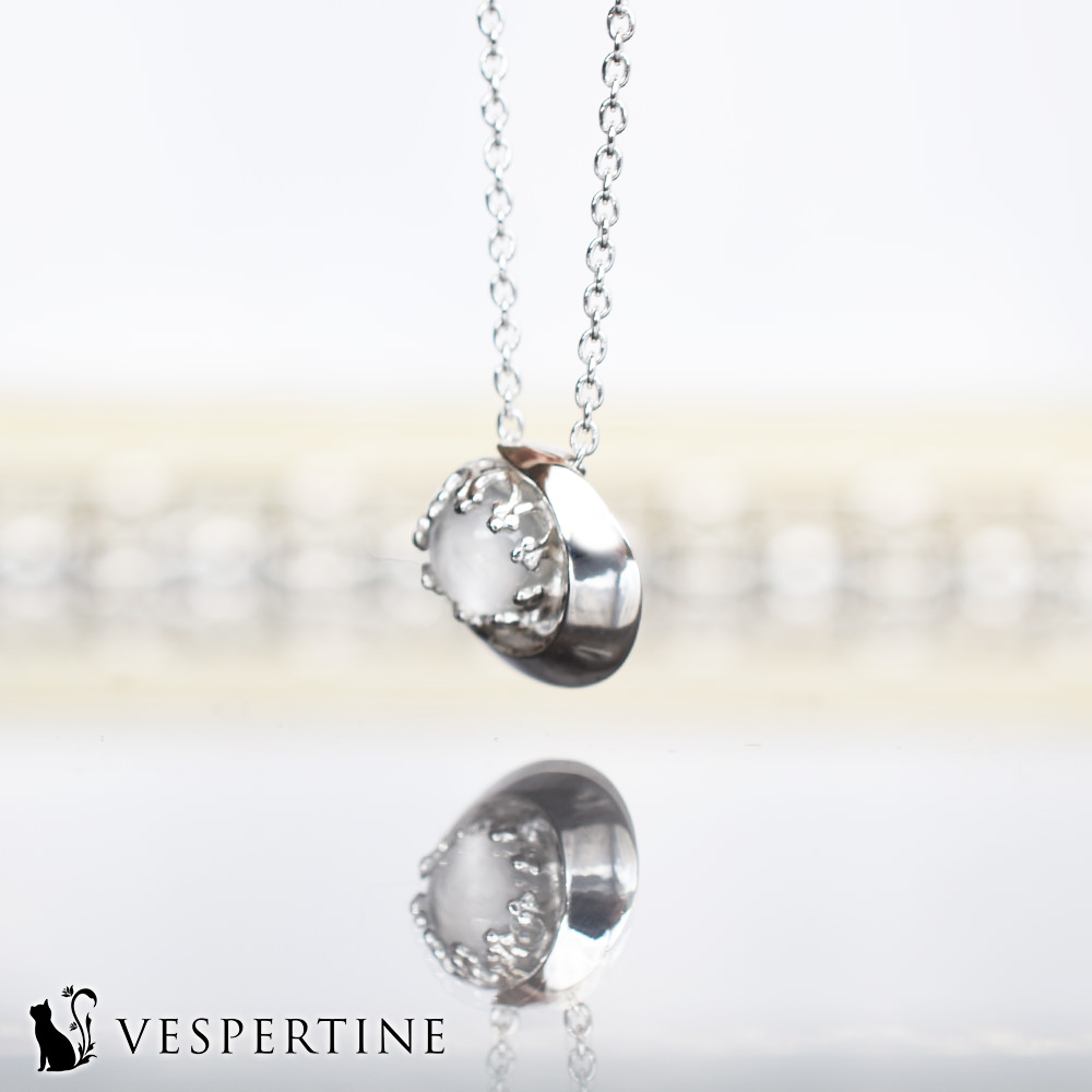 月を包み込む銀の輝きと、美しいムーンストーンが共鳴し、紡ぎだす、星空にきらめくVESPERTINE(ヴェスパタイン)の三日月のシルバージュエリー。