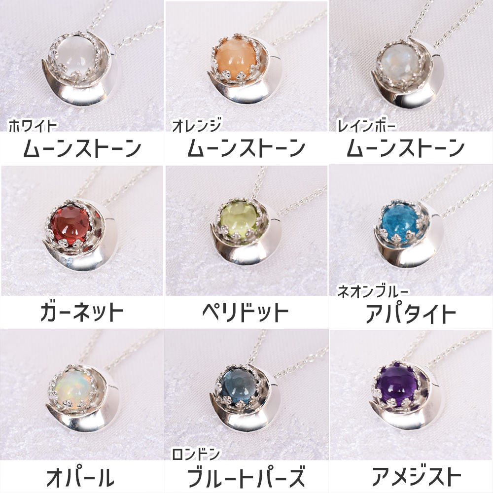 月に留める宝石は、ムーンストーンの他にもお選びいただけます。