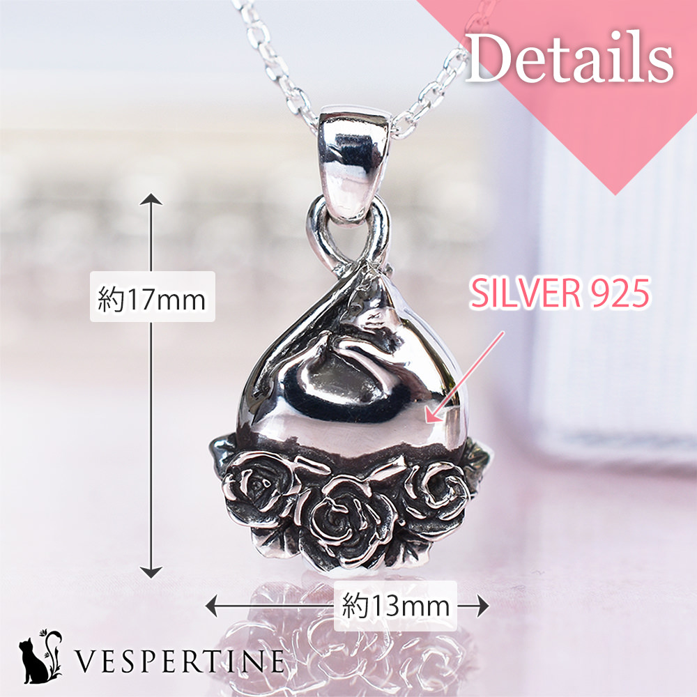 美と愛のシンボルでもある薔薇と眠る猫のチャーミングなシルバーアクセサリー。記念日や誕生日など、女性へのプレゼントにおすすめです。