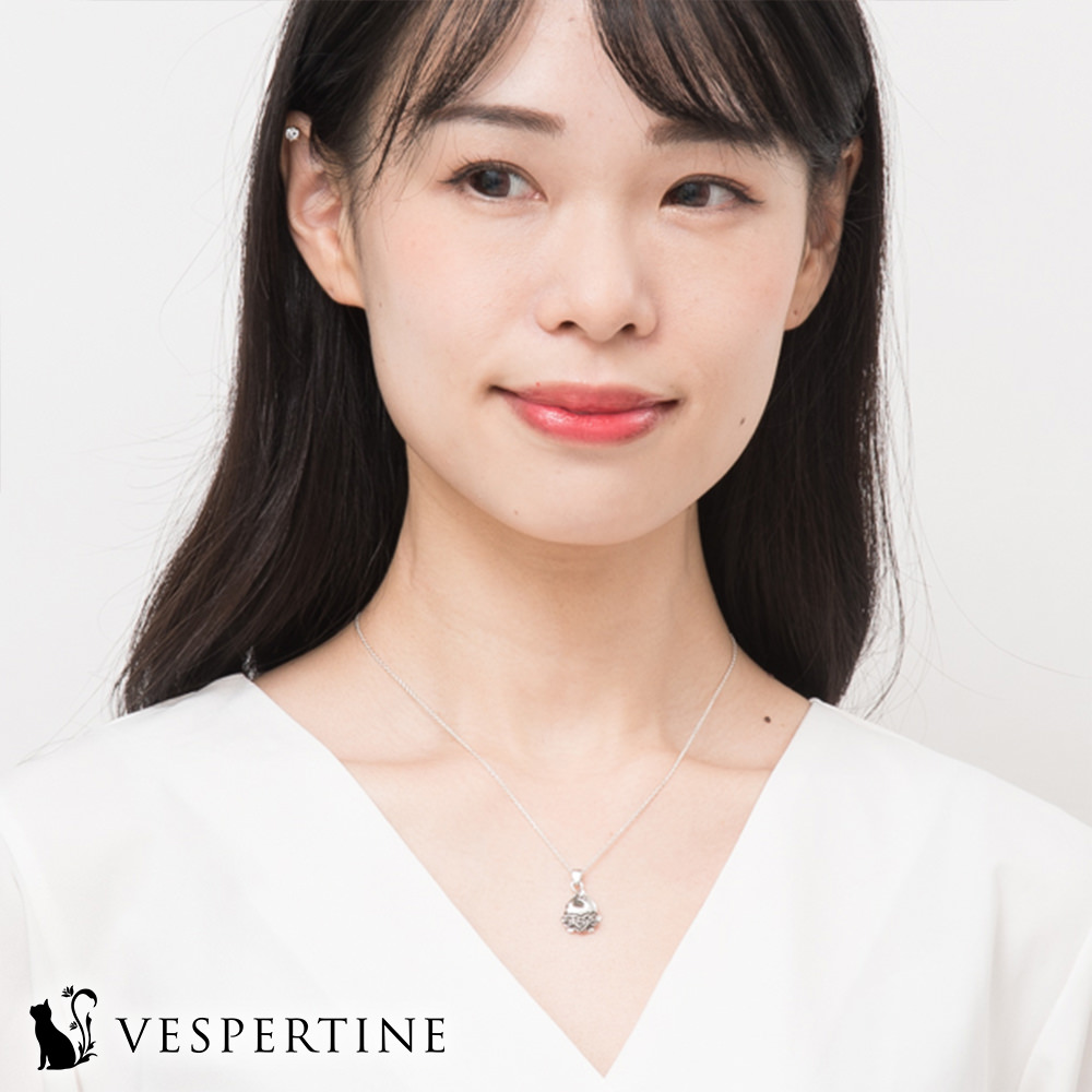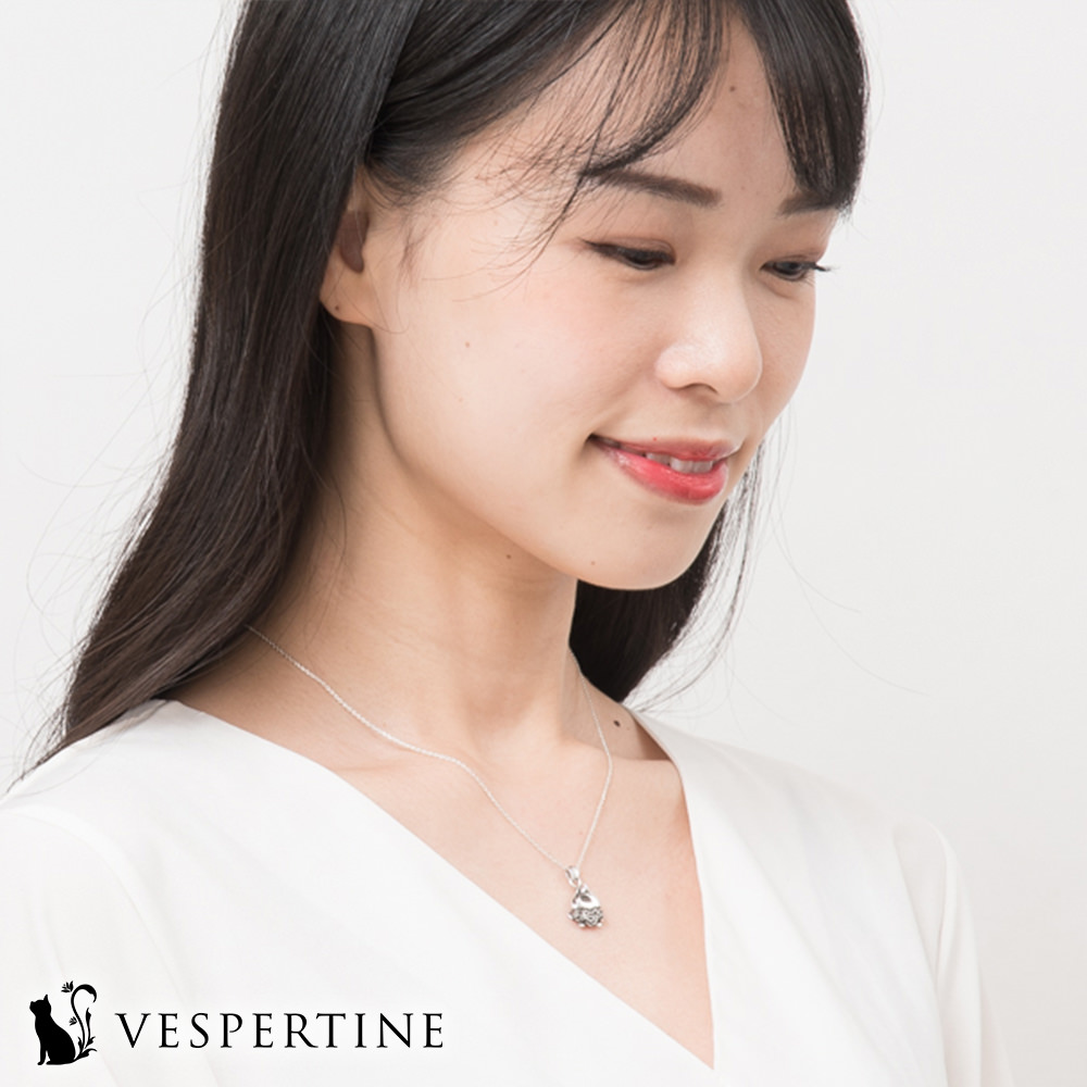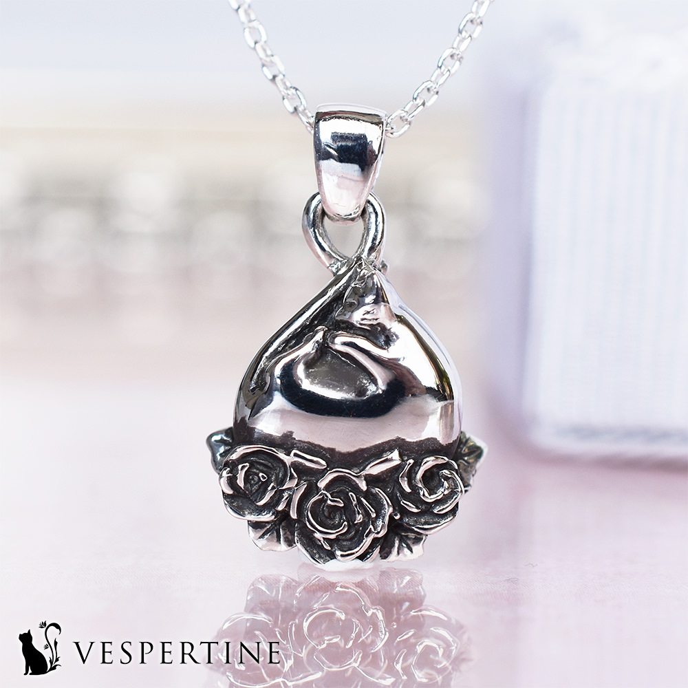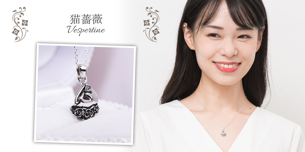 花好き、猫好きの女性へのプレゼントに人気です。猫と薔薇のジュエリー。『VESPERTINE』の『猫薔薇ネックレス』です。