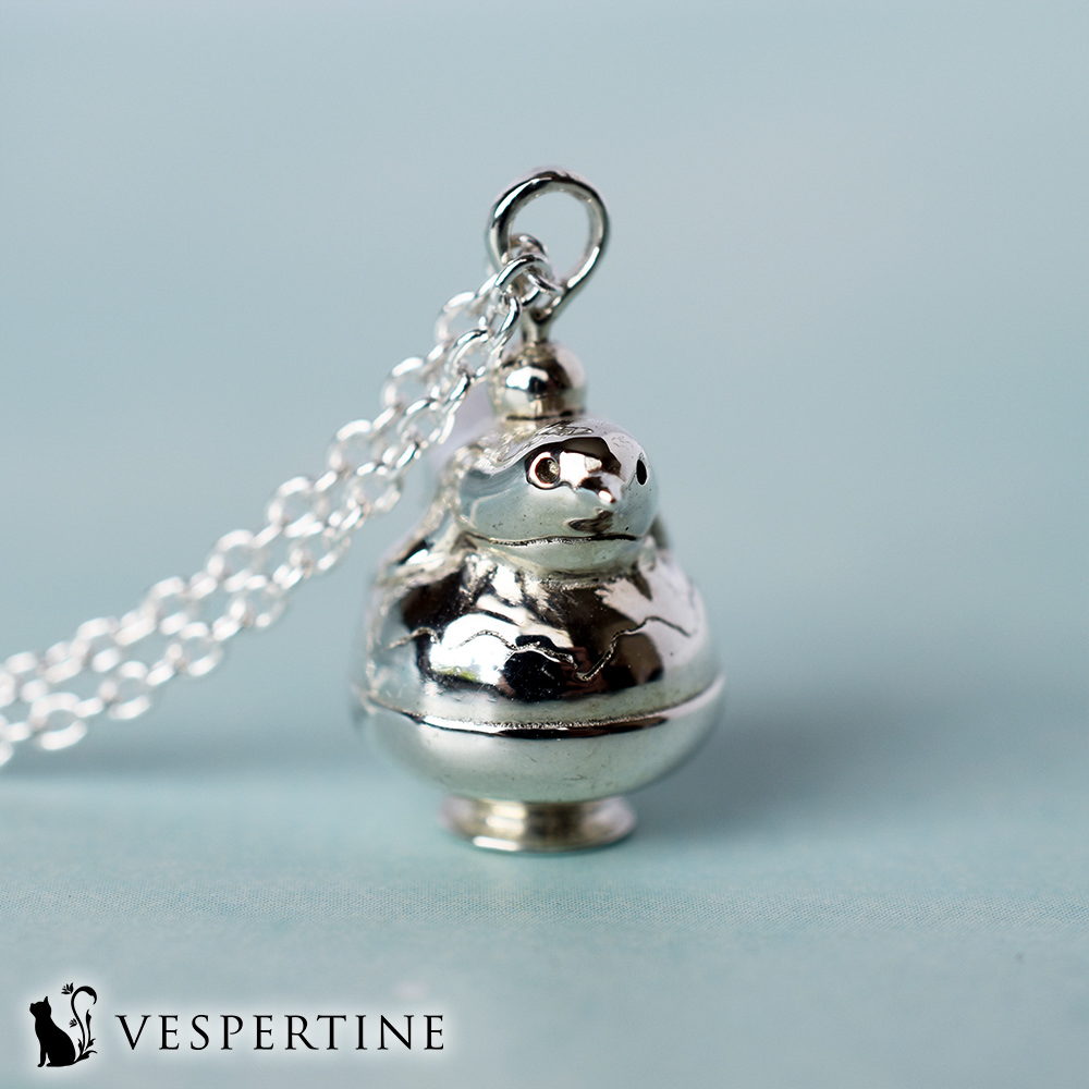 南極の氷からできた冷たいかき氷と、みずみずしいチェリー、そしてデザートみたいにペンギンが乗っかっているモチーフです。おいしそうなネックレスに仕上がりました。