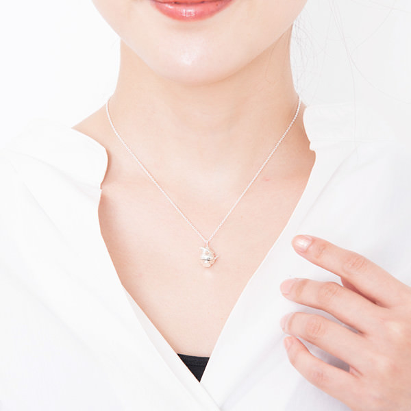 素材はキラキラときれいに輝いてくれるシルバー925です。控えめなサイズですので、胸元をさりげなく、そしてかわいらしく彩ります。