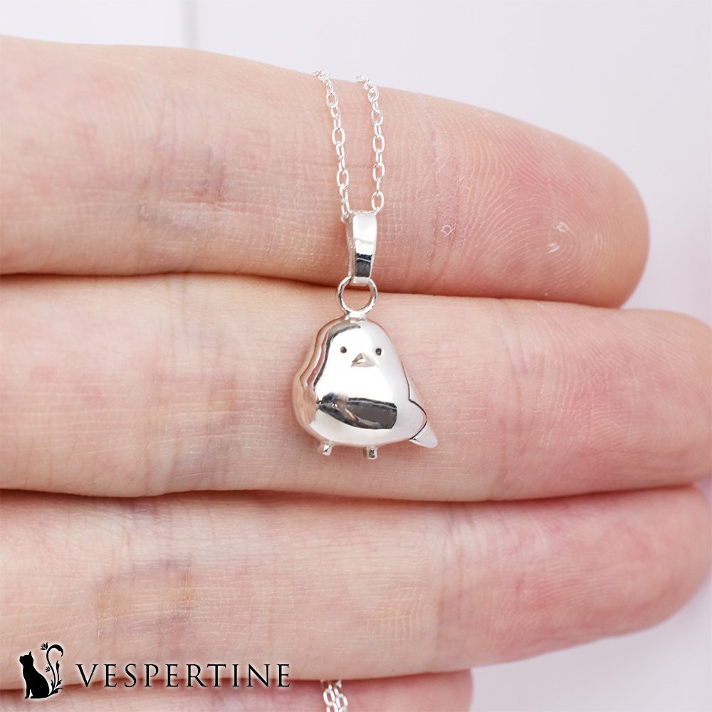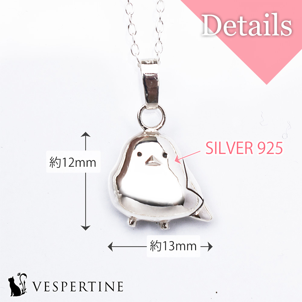 きらきらとしたシルバーの輝きが綺麗でかわいい、シマエナガのネックレス。