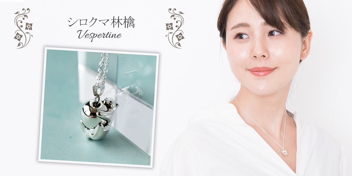 かわいいシロクマモチーフのアクセサリー。みずみずしい果実リンゴとシロクマが一体となった『VESPERTINE』オリジナルのネックレスです。