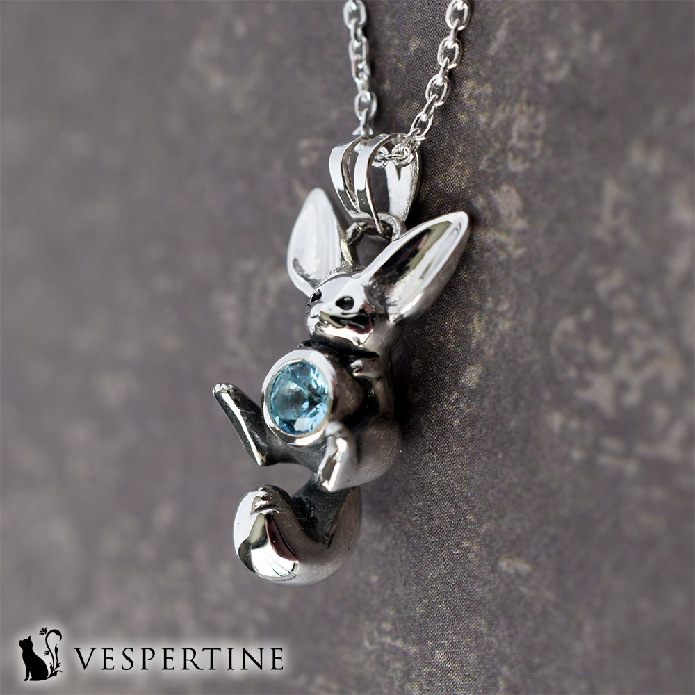 アニマルモチーフのシルバーアクセサリーを手掛ける【VESPERTINE】のフェネックのネックレス。可愛らしくデフォルメされたフェネックギツネがモチーフ。青、赤紫、緑の3種のカラーの天然石を選べます。キラキラ綺麗な銀は高級感もあり、フェネック好きな女性への誕生日プレゼントなどにも人気です。
