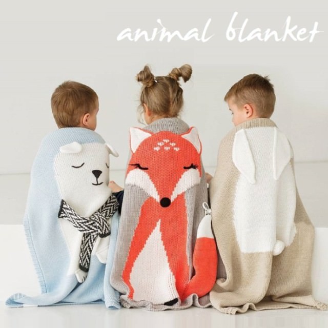 ▼動物デザインのブランケットです。きつねの他、しろくま、うさぎの種類があります。動物の部分が少し立体的になっているのがポイントです。汎用性のあって柔らかな肌触りの毛布ですので、色々な用途できっと重宝しますよ。優しくてピースフルな質感があります。