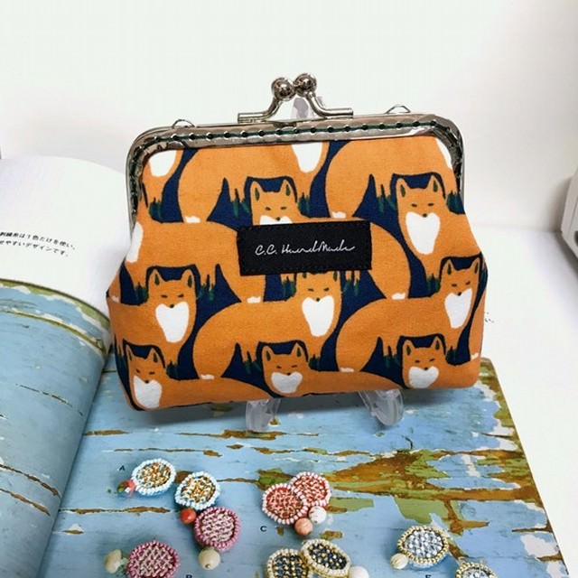 ▼たくさんのキツネがこちらをジッと眺めているような生地で作った小銭入れ、がま口のポーチです。少しシュールな感じが癖になりそうな作品ですね。落ち着いた色合いが綺麗で、北欧の雰囲気が良く出ています。小銭はもちろん、紙幣や一般的なカードを入れる大きさがあります。