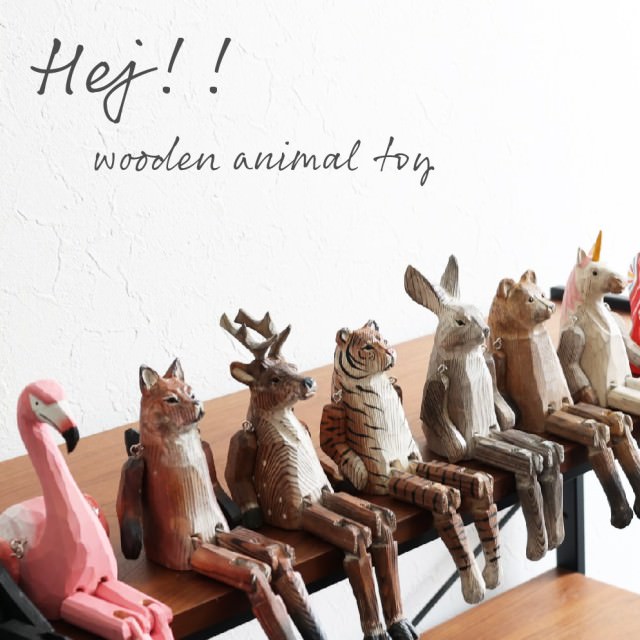 ▼一つずつ木彫りの彫刻で作られた動物のオブジェです。手と足を動かすことができ、お気に入りの場所で座らせることができます。置物にするのも良いですし、お人形遊びにも使えますよ。悟りを開いてジッと遠くを眺めているような、どこか気の抜けたユニークな表情が面白いですね。北欧のインテリア雑貨です。